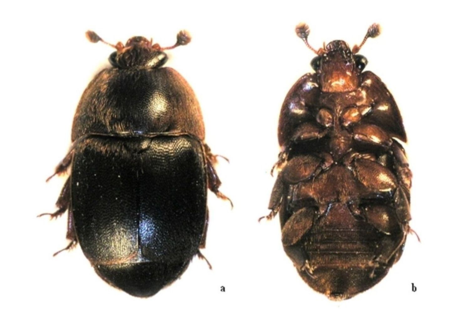 Small hive beetles have clubbed antennae, are usually about 5mm long and are dark brown or black in colour.