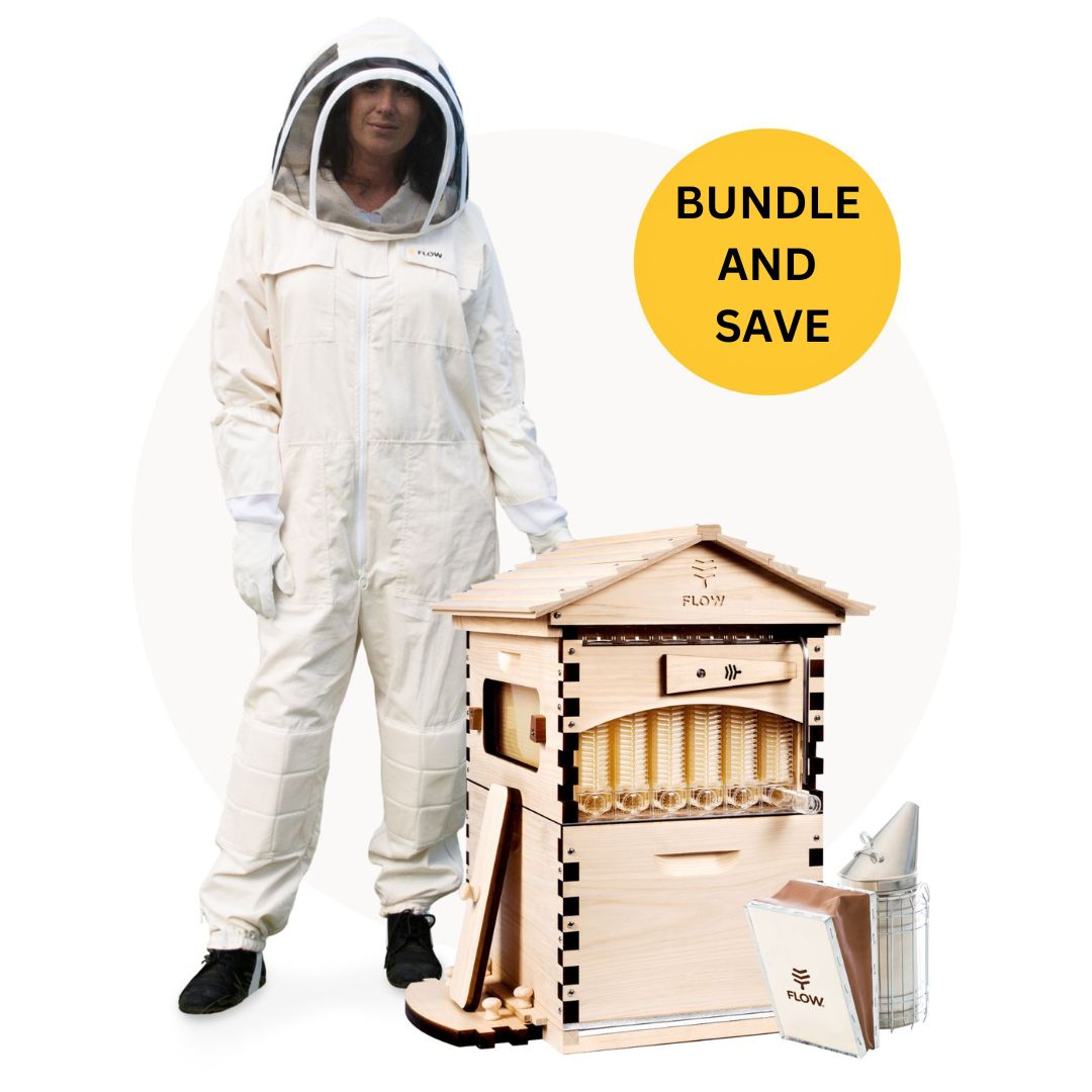 Featuring the Flow Hive Classic, bee suit, premium goatskin gloves, smoker and a sweet saving.