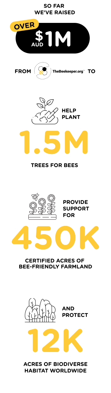 They need places to gather nectar and pollen safely. So we’re partnering with organisations that are doing amazing work protecting and regenerating habitat, and supporting farmers to create safe places for pollinators.